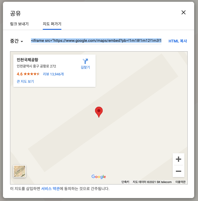 overflow:hidden이 된 레이어 안에 지도 소스를 넣고 iframe에