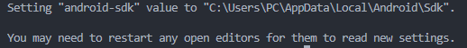 flutter config --android-sdk "C:\Users\PC\AppData\Local\Android\Sdk"